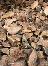 En la imagen, trocitos de la raíz de cocolmeca, con cuyo té sí se adelgaza. La raíz es de color rojizo, como se aprecia en la foto.